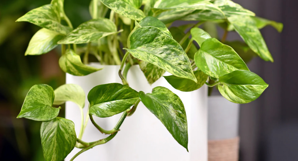Имеет вид вьющейся лианы с зелеными листьями, украшенными желто-белыми пятнами. Этот неприхотливый цветок хорошо растет в горшках и подвесных кашпо, быстро давая новые побеги.